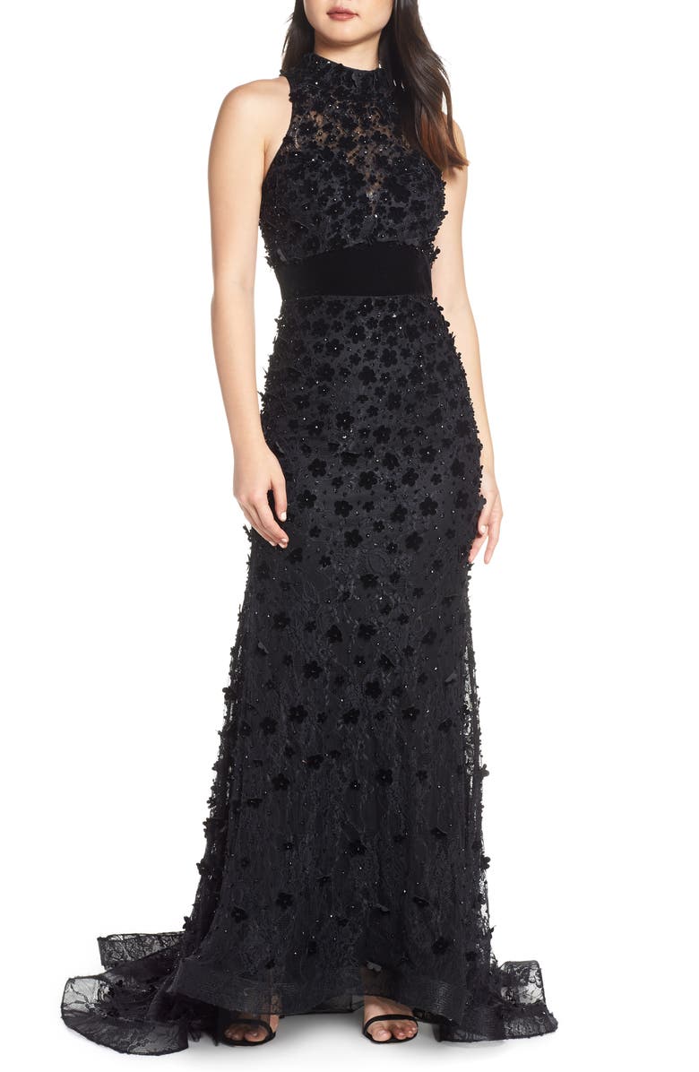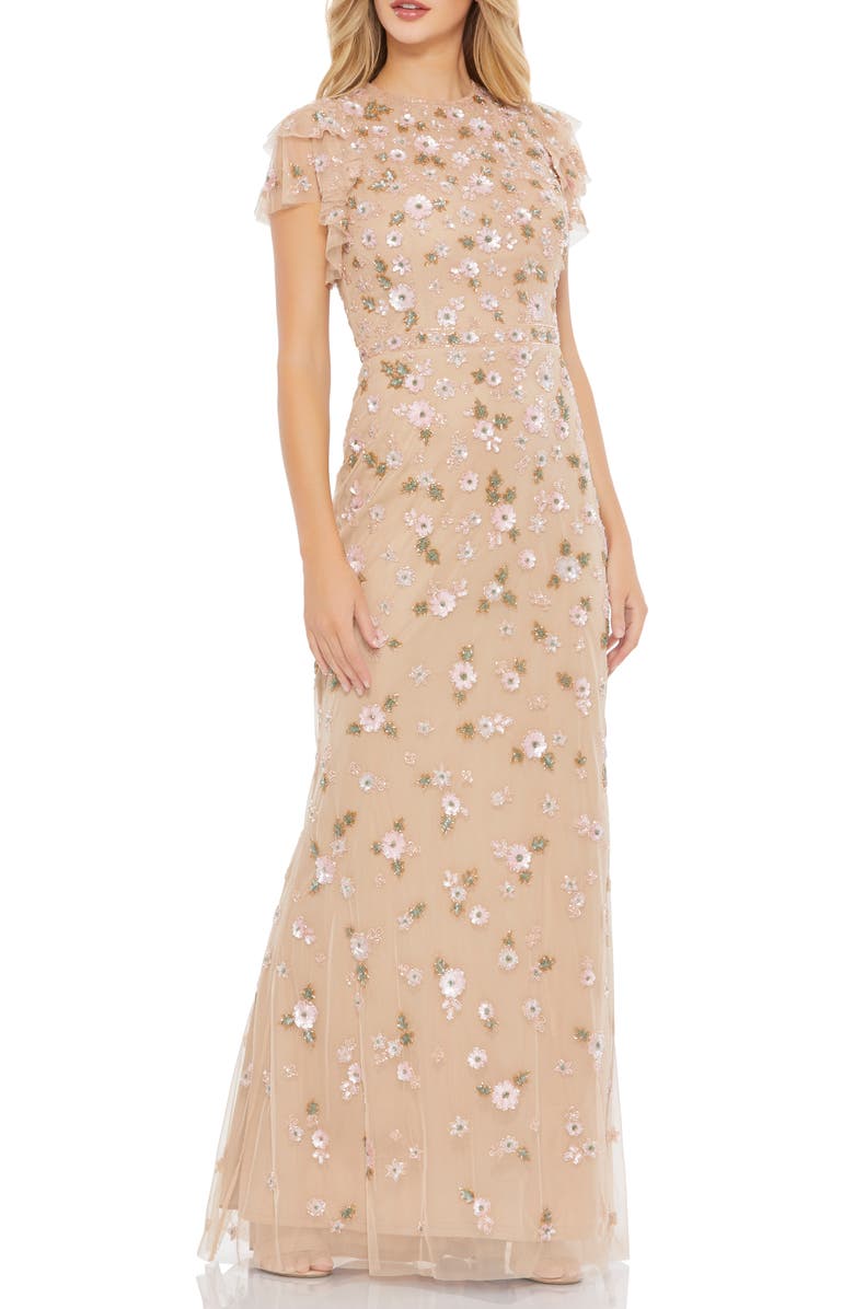 3D floral appliqués decorate the sheer sleeves of this floor-length gown with princess seams and perfectly placed gathers. Get a Sale Alert. Free Shipping on orders over 89.